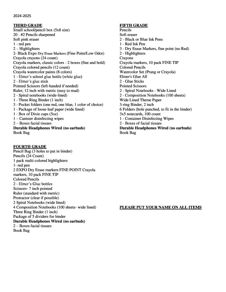 School Supply List